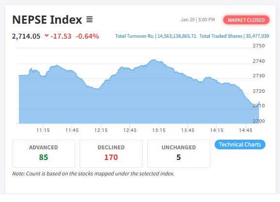 १७ अंकले घट्यो नेप्से, कारोबार रकम १४ अर्ब ५६ करोड