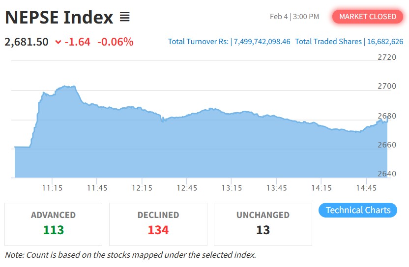 यस दिन नेप्से परिसूचक १.६४ अंक घटेर २ हजार ६ सय ८१ दशमलव ५० विन्दुमा झरेको छ।