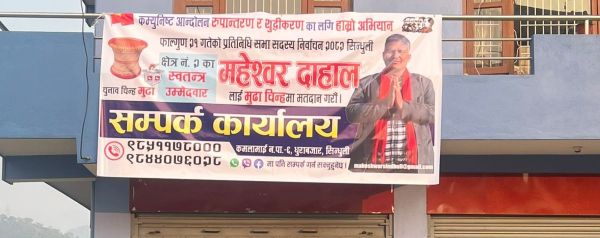 त्यस्तै, महेश्वर दाहालले फागुन २१ गते हुने प्रतिनिधि सभा सदस्य निर्वाचनमा सिन्धुलीबाट स्वतन्त्र उम्मेदवारका रूपमा उम्मेदवारी दिएका छन्। उनको चुनाव चिन्ह ‘मुढा’ रहेको छ।