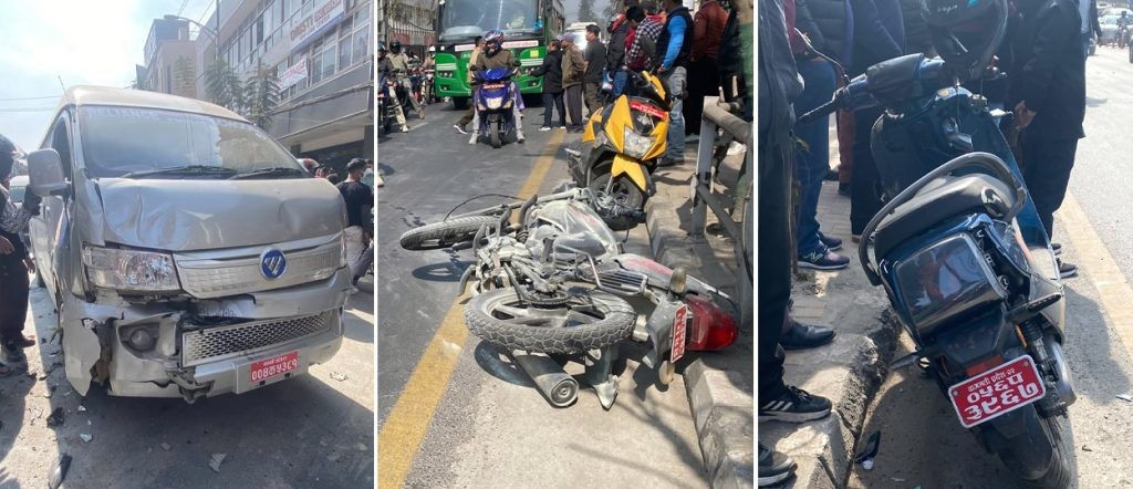 मंगलबार केहीबेर अघि मोटरसाइकल, स्कुटर र एउटा माइक्रो एक आपसमा ठोक्किएर दुर्घटना भएको जनाइएको छ ।