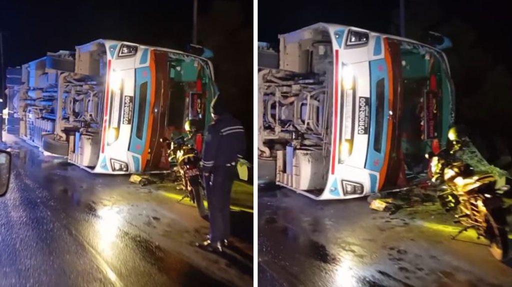 लुम्बिनी प्रदेश ०२–००१ ख ०४६० नम्बरको नाइट बस आज बिहान करिब ३ बजेर १० मिनेटमा आफैं अनियन्त्रित भई घुमाउने भन्ने स्थानमा पल्टिएको थियो ।