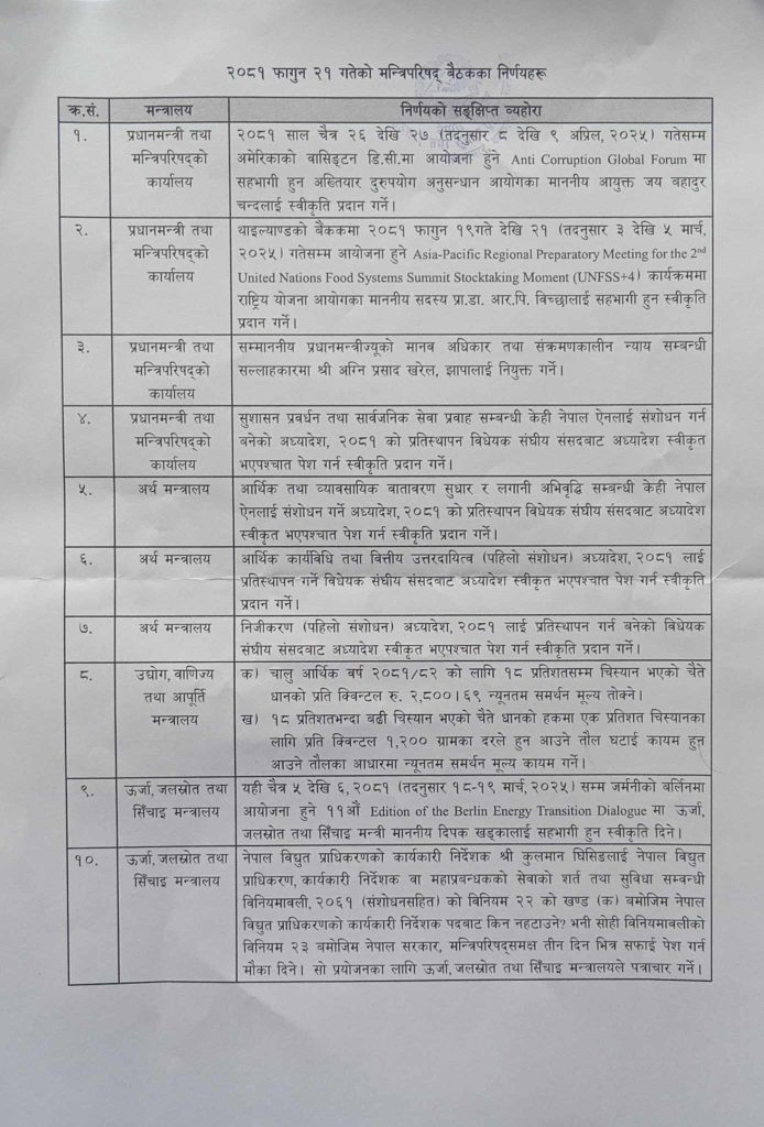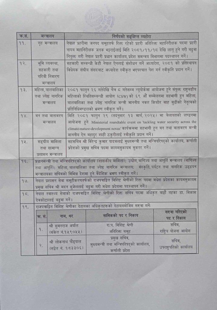 मन्त्रिपरिषद्का १९ निर्णय सार्वजनिक (सूचीसहित)