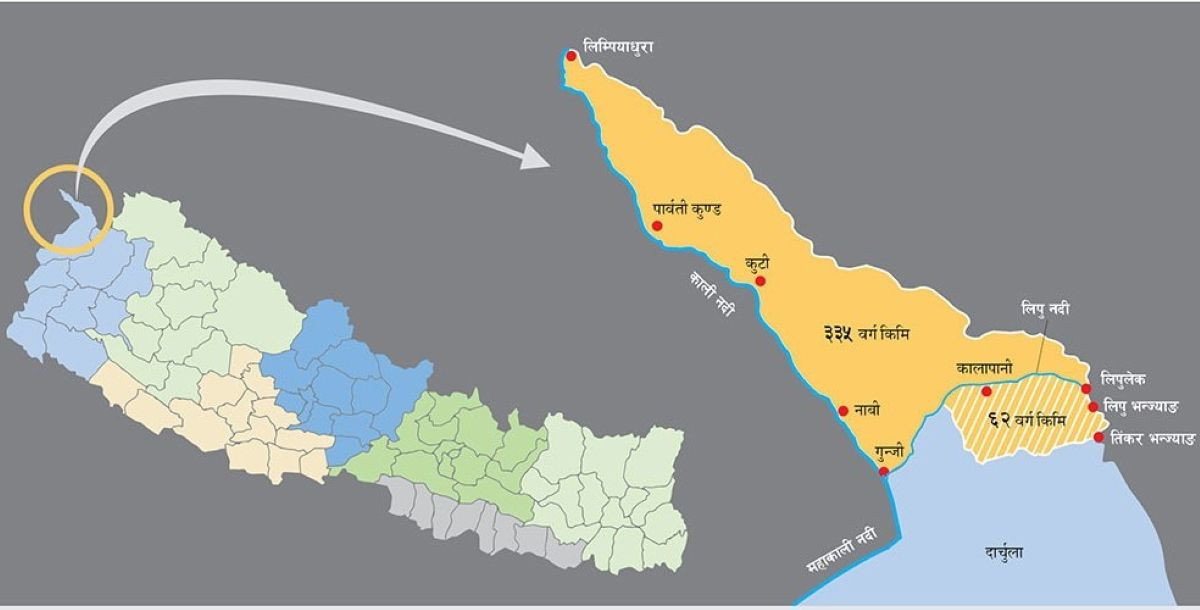 नेपालले सन् १८१६ को सुगौली सन्धिलाई आधार मान्दै महाकाली नदीको पूर्वतर्फ पर्ने कालापानी, लिम्पियाधुरा र लिपुलेक क्षेत्र आफ्नो भू–भाग भएको दाबी गर्दै आएको छ। भारत–चीन युद्धपछि सन् १९६० देखि उक्त क्षेत्रमा भारतीय सेनाको उपस्थिति रहेको बताइन्छ।